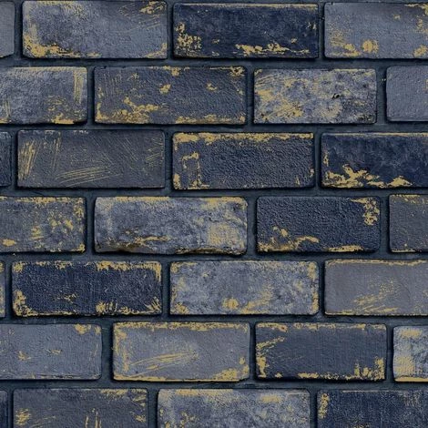 The Arthouse Metallic Brick Navy/ Gold Wallpaper is an easy way to add a dash of colour to your walls. This striking wallpaper is sure to make a welcome addition to your home. Featuring an intricately detailed and realistic metallic brick design in a blue colour scheme with gold metallic highlights for a truly mesmerising wallpaper.