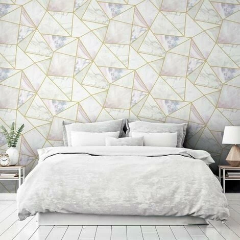 Design: Geometric. Design Repeat: 64cm. Easy Application, Easy To Remove, Offset Pattern Match. Finish: Matte, Metallic. Self Adhesive.