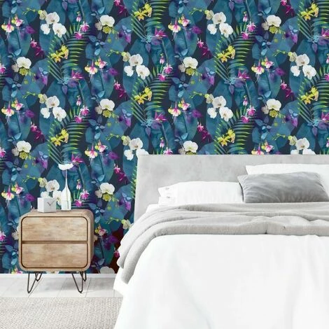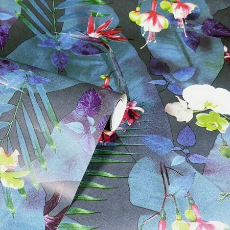 Design: Flowers, Foliage, Tropical. Design Repeat: 53cm. Easy Application, Easy To Remove, Offset Pattern Match. Finish: High Shine. Self Adhesive.