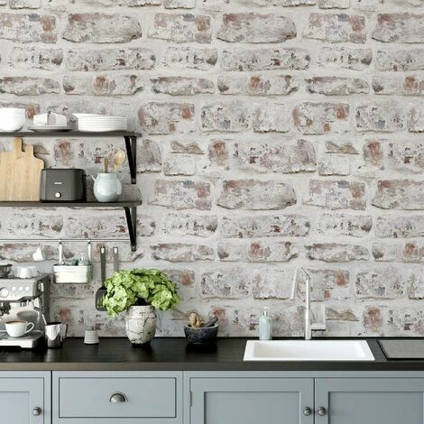 Design: Brick, Rustic, White Washed. Design Repeat: 53cm. Easy Application, Easy To Remove, Self Adhesive, Straight Pattern Match. Finish: Matte.