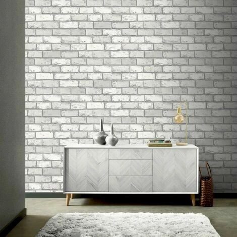 Design: Brick. Design Repeat: 64cm. Easy Application, Offset Pattern Match, Paste the Paper. Finish: Metallic.