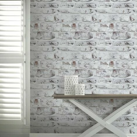 Material: Paper. Design: Brick, Rustic. Design Repeat: 53cm. Easy Application, Paste the Paper. Finish: White Washed.