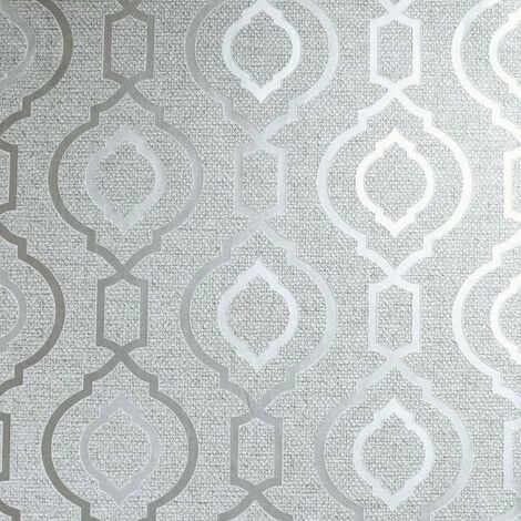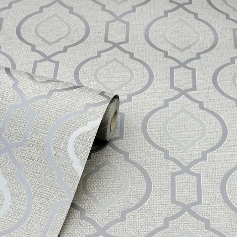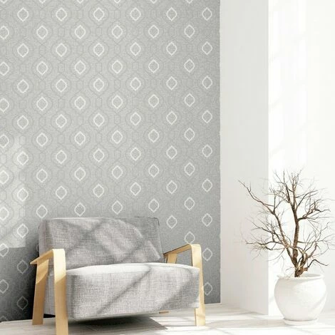 Material: Fabric, Vinyl. Design: Geometric. Design Repeat: 53cm. Easy Application, Paste the Paper, Straight Pattern Match. Finish: Metallic.