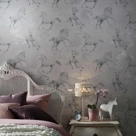 Design: Glitter, Horse, Printed. Design Repeat: 10.5in. Easy Application, Offset Pattern Match, Paste the Paper.