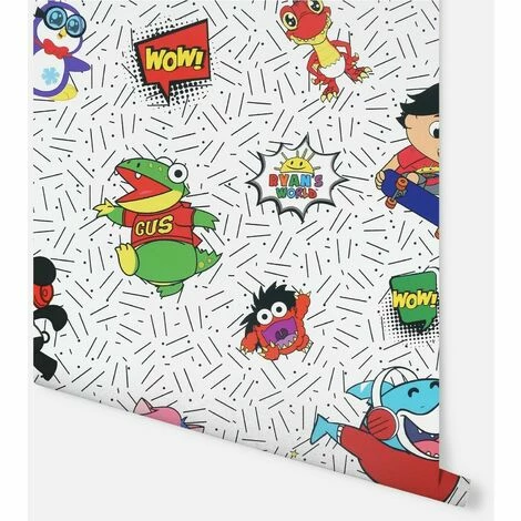 Ryan’s World Crew WallpaperFeatures cartoon characters from Ryan’s world, the popular toy review youtuber Perfect for a child’s bedroom or nurseryEasy to apply – paste the paperPattern Match – Off set 26.5cmSpongeable, Wet removable, good lightfastnessEach roll measures 10m long x 0.53m wide with a coverage of 5.32sqm approx per rollAll rolls ordered together will be the same batch number