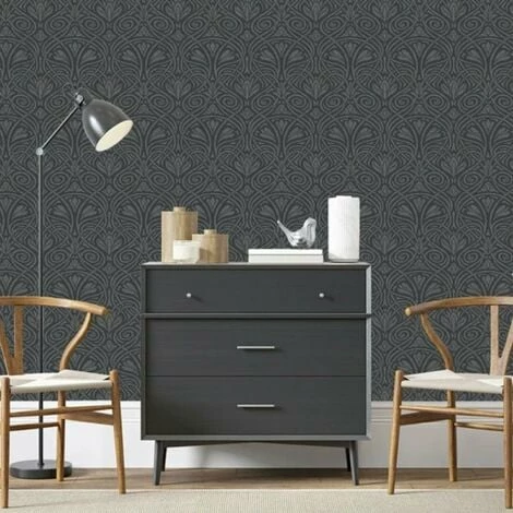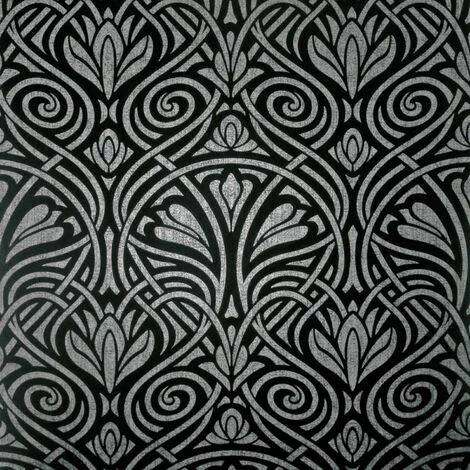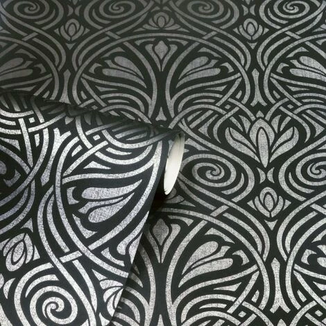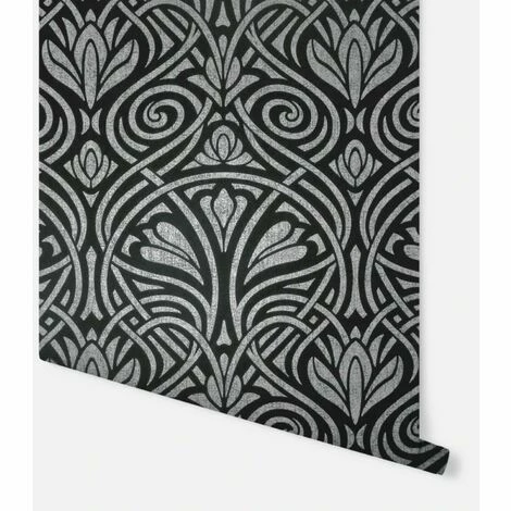 This beautiful Decadent Damask wallpaper would make a stylish statement in most rooms of your home. The design features a beautiful classic style damask pattern with a soft metallic silver finish, set on a rich black blue background with a textured ridged effect. This high quality wallpaper would look great as a feature wall or equally good when used to decorate a whole room and with it being vinyl it’s an ideal wallcovering for high traffic areas such as hallways, but it’s suitable for all rooms.