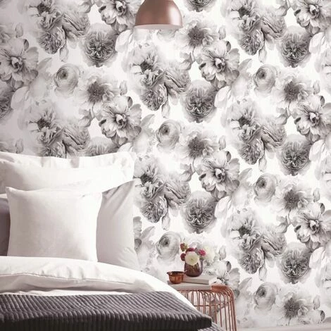 A monochrome floral print design in black, silver and grey colours that all sits on a silver tinted white background to complete this quality textured vinyl wallpaper. The wallpaper has a thin random string texture which has a subtle sheen which adds to the beautiful silver glitter that sparkles wonderfully. This realistic floral wallcovering is also available in Blush Pink (257000) and can be matched with the Charcoal Black (258000) or Silver (258006) plain glitter textured wallpapers from the same range. Brand: Arthouse Colour: Black,Grey Design: Floral,Rose Type: Glitter Vinyl Finish: Textured Pattern Match: Offset Match Pattern Repeat: 26.5cm Standard Roll Size: 10 x 0.52 meters Durability: Washable Application: Paste the paper