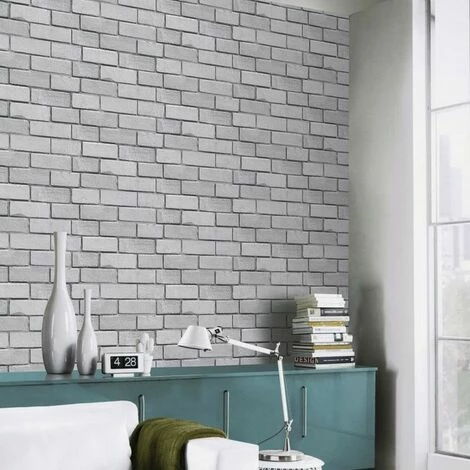 Design: Brick, Contemporary, Glitter. Design Repeat: 25in. Easy Application, Paste the Paper, Straight Pattern Match.