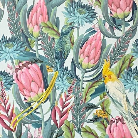 Material: Vinyl. Design: Birds, Flowers, Foliage, Rainforest. Design Repeat: 53cm. Easy Application, Paste the Paper, Straight Pattern Match. Finish: Textured.