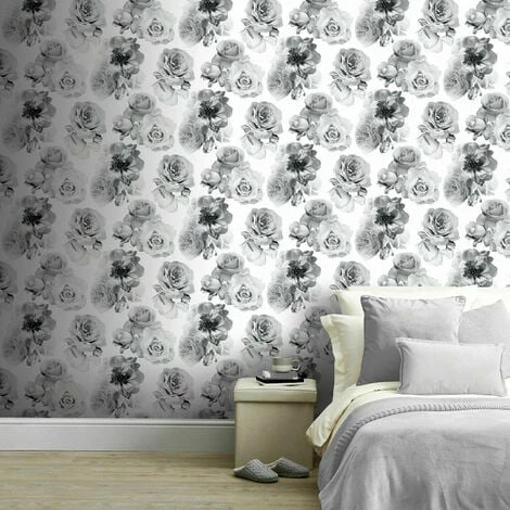 Arthouse Floral Bloom Mono WallpaperFeatures large floral blooms in a mono colourway with added metallic silverPerfect as a statement feature wall or a whole room coveringEasy to apply – Paste the paperStraight match – Pattern repeat: 53cmSpongeable, Good lightfastness, Wet removableEach roll measures 10m x 0.53m with a coverage of: 5.32sqm approxAll rolls ordered together will be the same batch number