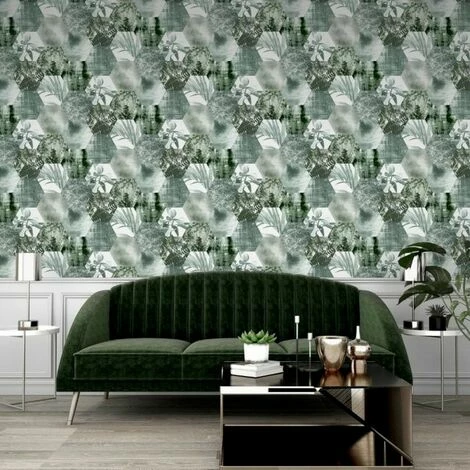 Design: Botanical, Hexagon. Design Repeat: 64cm. Easy Application, Offset Pattern Match, Paste the Wall. Finish: Matte.