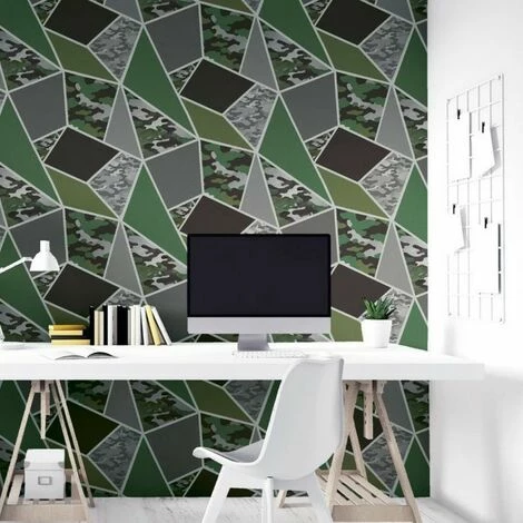 Design: Abstract, Camo, Metallic, Triangle. Design Repeat: 53cm. Easy Application, Offset Pattern Match, Paste the Paper.