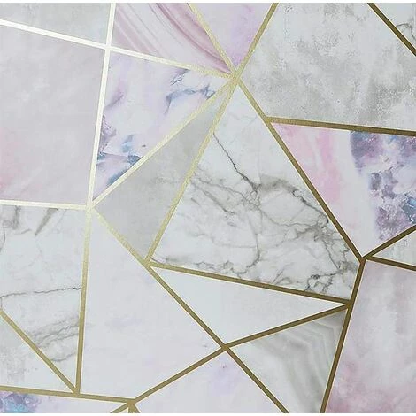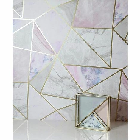 Inspired by art deco style, this geometric wallpaper also has a thoroughly modern feel. With angular gold-tone metallic highlights contrasting against natural marble-effect patterns, it creates a design with a distinctive and elegant personality. In a combination of muted lilac and grey tones, this paper will create a relaxing and sophisticated vibe, perfect for introducing light into a bedroom or living room. Paper a single wall or a whole room to achieve the high-end style you desire. This high quality wallpaper could be used to create a feature wall or to decorate an entire room. Additional Product Information: Pattern Repeat: 64/32cm Pattern Match: Offset Match Wallpaper Type: Paper Wallpaper Finish: Flat Durability: Spongeable Roll Length: 10m Roll Width: 53cm Roll Coverage is 5.3 Square Metres Application: Paste the Paper