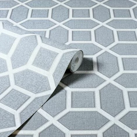 Create a modern yet classic look in your home with this stunning Hotel Luxe Origin Gunmetal wallpaper from Arthouse collection. Featuring an embossed geometric design in metallic white with glitter accents set on a textured grey background this luxurious, vinyl wallpaper will add charm and style to your interiors.