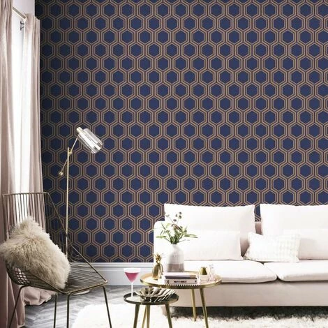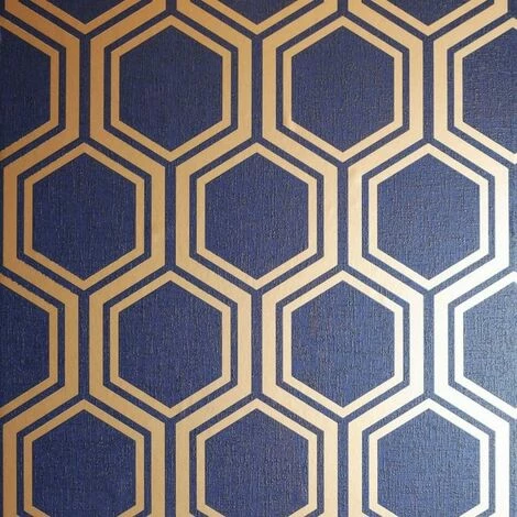Design: Fabric Effect, Geometric, Hexagon, Metallic. Design Repeat: 53cm. Easy Application, Paste the Paper, Straight Pattern Match. Finish: Sheen, Textured.