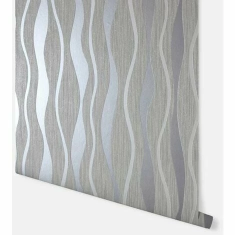 Sleek and modern, this wallpaper is the definition of chic with a vertical design in grey silvery tones. Contrasting metallic and glitter, the effect is stunning, bouncing light back into your room, whether your furniture is scandi inspired or ultra-modern. The combination of grey and silver creates an opulent feel, whether you choose this paper for a dining room, living room or bedroom. Paper a feature wall or alcove or give a room the deluxe treatment on every wall – whichever you choose the look will be ultra-stylish .
