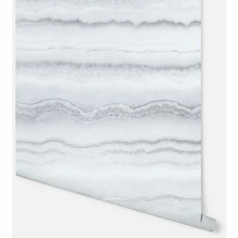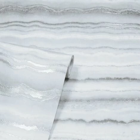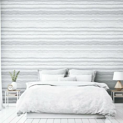 Arthouse’s Mineral stripe white & silver wallpaper draws inspiration from the beauty of layered agate to bring home an organic, understated luxurious effect. This wallpaper is enhanced with encased glitter for a WOW effect on your walls.