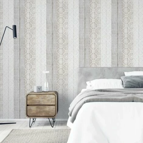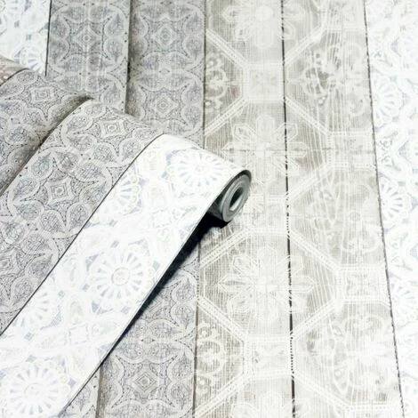 A timeless wallpaper with a Moroccan charm, this design blends a washed-out wood effect with intricate patterns for a soft, romantic and intriguing look. In neutral tones, it’s a versatile choice to go with so many interior colour schemes, and homes old and new. Choose this paper for a feature wall to go with pale walls, or paper a room throughout to create eye catching style. It’s a great choice for a living room, kitchen or bedroom – in fact almost any room. Suitable for most rooms except high moisture environments, like bathrooms.
