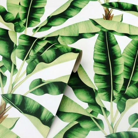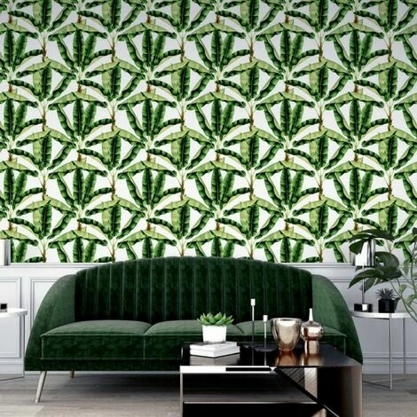 Material: Paper. Design: Palm Leaf, Repeat Print. Design Repeat: 53cm. Easy Application, Offset Pattern Match, Paste the Paper. Finish: Matte, Smooth.