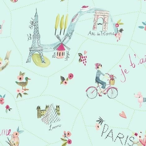 Arthouse Paris With Love Duck Egg WallpaperONLY 7.95 INCLUDING FREE DELIVERY!RRP IS 14.99Featuring a Holiday In Paris themed paper ,complimented by glitter, offered in a duck egg colour scheme with multi colouring throughoutIdeal feature wall wallpaperCreate a focal point in your interiors with this one of its kind wallpaper from the trusted brand ArthouseEach roll measures 0.53m x 10mPattern Repeat – 26.5 cm OffsetPeelableSpongeableGood LightfastnessPaste the PaperAll rolls are perfect, sealed and sent from the same batchWe are confident you will be delighted with your purchase; this is an absolute bargain for such a high quality wallpaper.Please note different monitors show different colours, we always recommend obtaining a sample to obtain a true colour match,