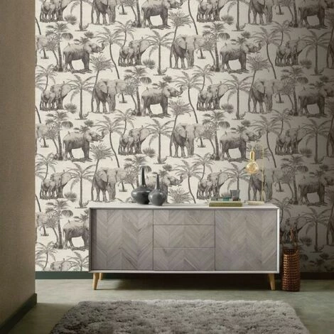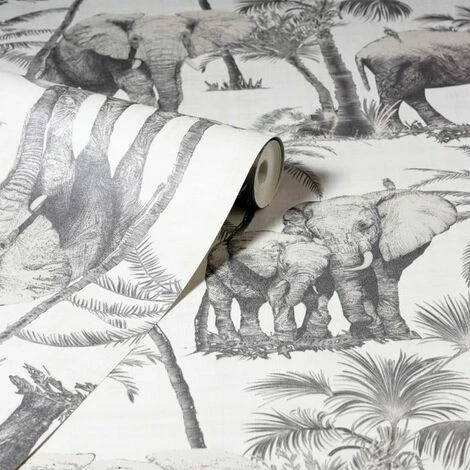Design: Elephant, Palm Tree, Safari. Design Repeat: 64cm. Easy Application, Paste the Paper, Straight Pattern Match.