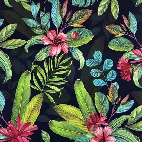 Width: 53cm. Length: 10m. Design: Flowers, Leaves, Tropical. Design Repeat: 64cm. Easy Application, Offset Pattern Match, Paste the Wall. Finish: Matte, Textured.