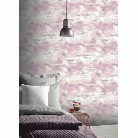 The Arthouse Watery Skies Pink Wallpaper is an easy way to add a dash of colour to your walls. This striking wallpaper is sure to make a welcome addition to your home. Featuring a full moon in a dream-like cloudy sky with subtle glitter highlights that catch the light and comes in a palette of soft pinks for a truly mesmerising wallpaper.