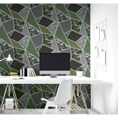 Bring a modern feel to your living space with this stunning camo fragments wallpaper from Arthouse. This design features a brilliant geometric pattern with classic camouflage prints throughout, set on a smooth paper for a truly contemporary wallcovering.
