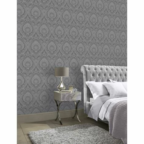 The Arthouse Damask Gunmetal Grey /Silver Metallic Wallpaper is an easy way to add a dash of colour to your walls. This striking wallpaper is sure to make a welcome addition to your home. Featuring a beautiful damask inspired design and is brought to life in a dramatic combination of metallic silver and gunmetal grey for a truly mesmerising wallpaper.