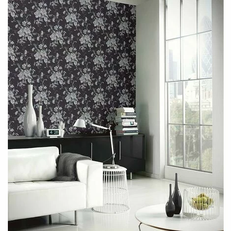 This amazing Bijoux Fleurette wallpaper from Arthouse is a sure way to add a touch of class and style to your walls. Featuring beautiful floral prints in a silver holographic design through, set on a luxury black vinyl for a truly mesmerising wallpaper.