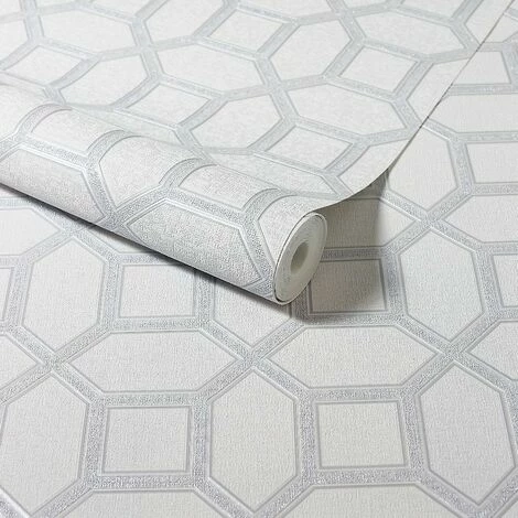 Introduce some glamour to your living space with this gorgeous Hotel Luxe wallpaper from Arthouse. This design features a stunning geometric trellis print in silver and grey with glitter detail throughout, finished on a textured vinyl background for a truly mesmerising wallcovering.