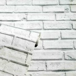 ARTHOUSE White Brick Wallpaper Retro Realistic Whitewash Feature Wall Rustic Effect