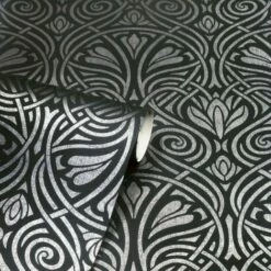 Arthouse Decadent Damask Black/Silver Heavy Duty Blown Vinyl Feature Wall