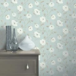 ARTHOUSE Antoinette Floral Wallpaper Teal White Taupe Flowers Metallic Smooth Finish