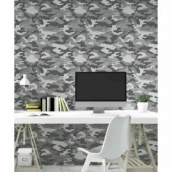 Arthouse Artistick Elephant Grove Wallpaper (6m X 53cm) (Charcoal/Cream)