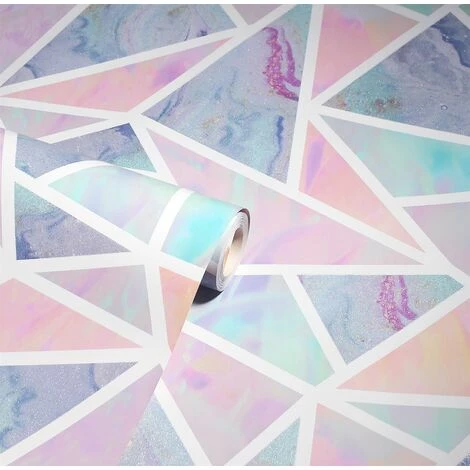 Bring a modern feel to your living space with this stunning pastel geometric wallpaper from Arthouse. This design features a brilliant geometric style pattern with liquid marble effect prints and glitter detail throughout, set on a smooth paper for a truly contemporary wallcovering.