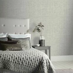 Luxury Hessian Grey Wallpaper Arthouse Textured Vinyl Glitter Linen Effect