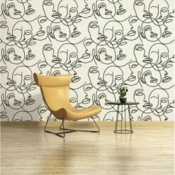 Linear Faces Wallpaper Arthouse Modern Black White Contemporary Abstract