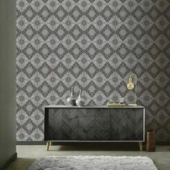 Medallion Wallpaper Arthouse Paste The Wall Textured Vinyl Silver Metallic