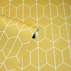 Linear Geometric Wallpaper Arthouse Ochre Yellow White Modern