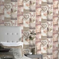 Love Paris Wallpaper Blush Pink Arthouse Glitter Sparkle Butterfly Flower