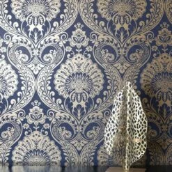 Damask Wallpaper Navy Blue Gold Metallic Shimmer Textured Arthouse Decoris