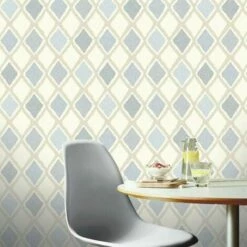Diamond Geometric Lattice Wallpaper Trellis Blue Grey White Arthouse Ayat