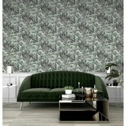 Greenhouse Plants Wallpaper Arthouse Tropical Jungle Grey Teal Blue