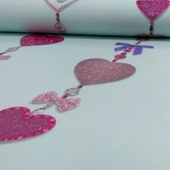 Arthouse Tiffany Hearts Stripe Wallpaper (10m X 53cm) (Duck Egg Blue)