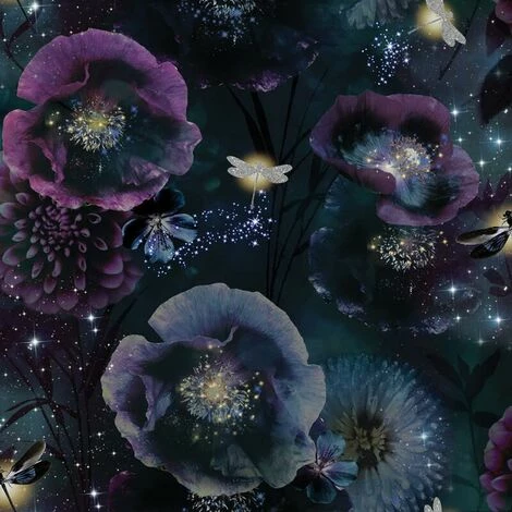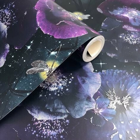 The Arthouse Nocturnal Purple/Teal Glitter Wallpaper is an easy way to add a dash of colour to your walls. This striking wallpaper is sure to make a welcome addition to your home. Inspired by the English garden at night. It features a dramatic floral print in a fashionable purple and teal colour scheme. Glitter accents add that all important sparkle effect for a truly mesmerising wallpaper.