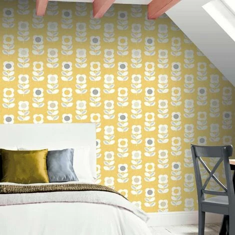 This eye catching wallpaper is sure to make a welcome addition to any home. With a retro inspired floral design that is brought to life in beautiful grey and orange colour scheme.