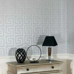 Arthouse Greek Key Foil Textured Wallpaper (10m X 53cm) (Silver)