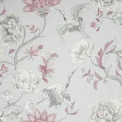 Arthouse Japanese Crane Grey & Pink Wallpaper Textured Vinyl Feature Wall