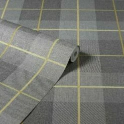 Arthouse Heritage Tartan Textured Wallpaper (10m X 53cm) (Ochre/Grey)